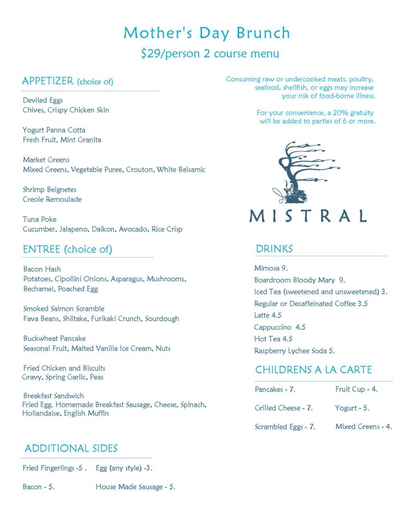 $29/person 2 course menu, kids 8 and under may order a la carte